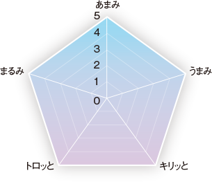 라벨에 그려진 황금색 오각형의 바깥쪽에는 2대 사장이 추구해 온 기리시마 소주의 맛 ‘단맛·감칠맛·부드러움’과 함께 구로키리시마의 맛을 표현한 ‘진득함·깔끔함’이라는 다섯 가지 특징을 새겨 넣었습니다. 이 5가지 요소를 극대화한 황금비 맛“デリシャス・ペンタゴン”이 형성됩니다. 오각형의 안쪽에는 ‘규슈산 고구마 100%·기리시마 열하수 100%·국산쌀100%’, ‘본격소주는 당질·푸린체 제로’라는 메시지도 새겨져 있습니다.