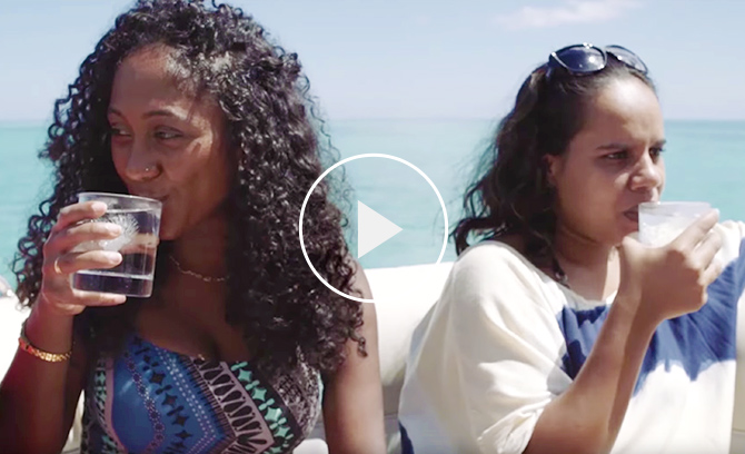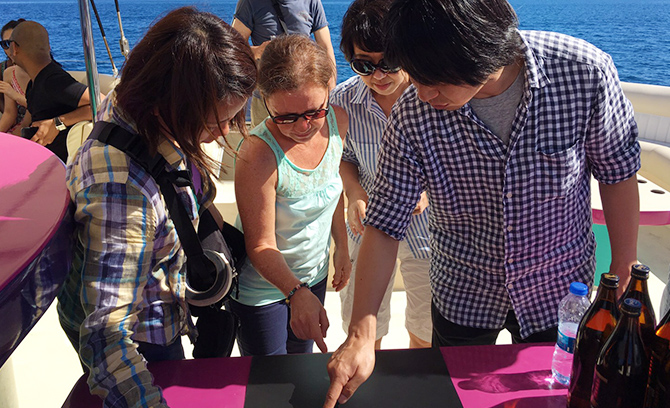 撮影現場はクルーザーの船上。パーティーのシーンを船外から客観的に撮影するため、クルーザーに備え付けの小型ボートにディレクターとカメラマンのみ乗り込み撮影を行った。