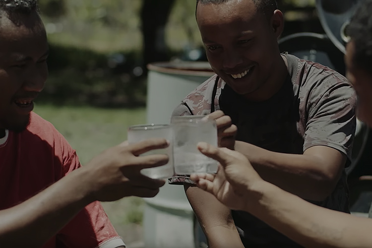 その後、現地コーディネーターの地元の村で、村ぐるみのパーティーを行うことになり撮影を再開することができた。その時の撮影が「レッツ トライ」篇の第一弾となった。