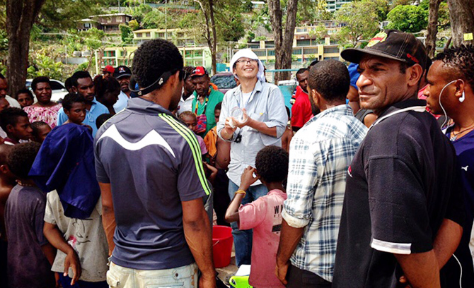 現場で特に大変だったのが、氷の準備。パプアニューギニアは気温が高いため、事前に氷を頃合いのサイズに切り出しておくと、いざ撮影時には氷が溶けているため、使用直前に切り出す必要があった。