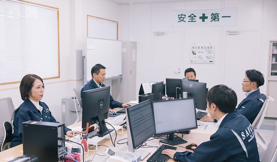 労働安全推進室では、社内の労働環境向上のため、様々な取り組みを行う。例えば交通事故防止に向けた安全運転の推進、新入社員への安全教育、目的・テーマに応じた社内勉強会、定期的な社内監査など。労働基準監督署や警察署とも連携をしながら推進している。