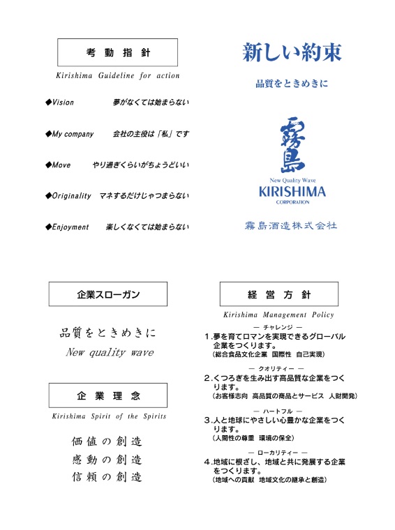 '새로운 약속', '기업이념', '경영방침' 등을 제시 - 시비타 공장 내에 오크통 저장고와 다목적 홀을 병설한 '기리노쿠라 홀'을 준공
