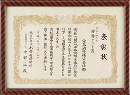‘구로키리시마’가 2002년도 식품히트대상의 주류 부문에서 우수히트상을 수상