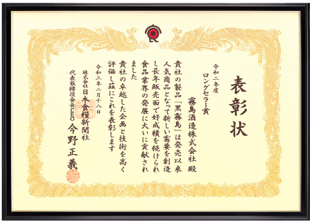 ‘구로키리시마'가 2020년도 식품히트대상에서 롱셀러상을 수상