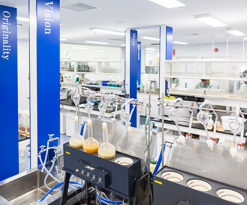 소주에는 다양한 성분이 함유되어 있지만, 향미에 기여하는 모든 성분은 아직도 규명되지 않았습니다. 따라서 소주의 단맛과 풍미를 조절할 수 있는 양조 기술의 확립을 목표로, 각 원료와 소주에 대한 포괄적인 분석과 관능 평가를 조합하면서 향미 기여 성분을 규명하는 데 힘쓰고 있습니다.