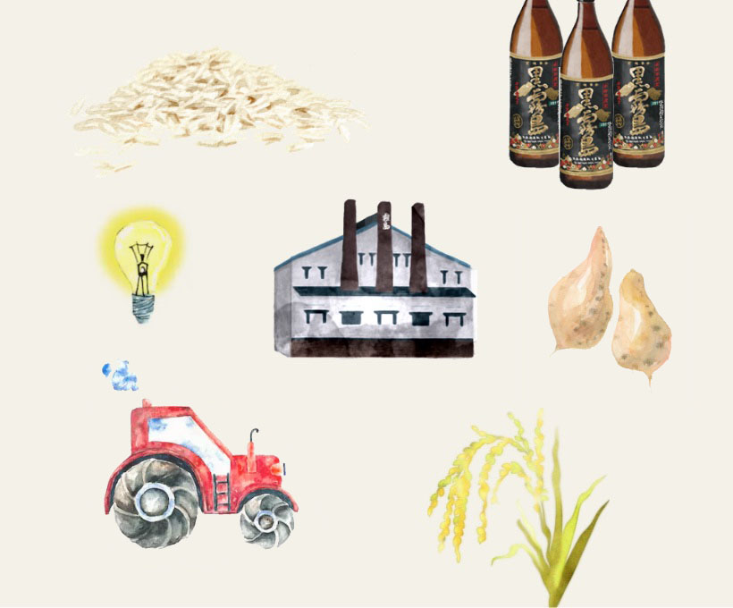고구마 소주를 양조하는데 쌀을 사용하는 것은 누룩을 만들기 위해서입니다. 증숙된 쌀에 누룩균을 뿌리면, 약 이틀에 걸쳐 누룩균이 자랍니다. 누룩균이 만들어내는 효소는 쌀과 고구마의 전분을 당으로 분해하는 작용을 합니다.