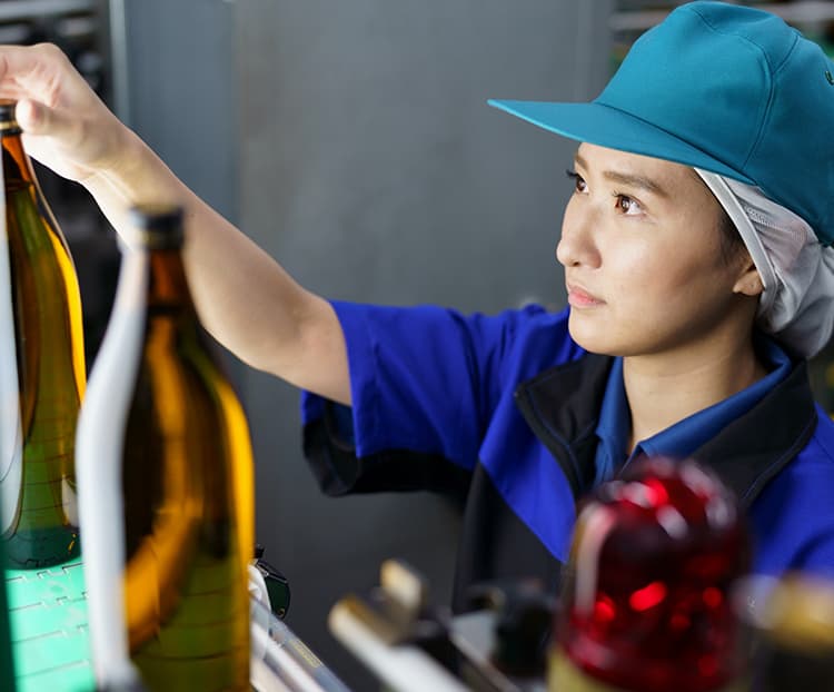블렌딩·희석한 소주를 다양한 크기와 형태의 용기에 자동제어 충진기를 이용하여 채워 넣습니다. 이후 검사 기계와 육안으로 엄격한 검사를 거쳐 최종 품질검사를 진행합니다.
