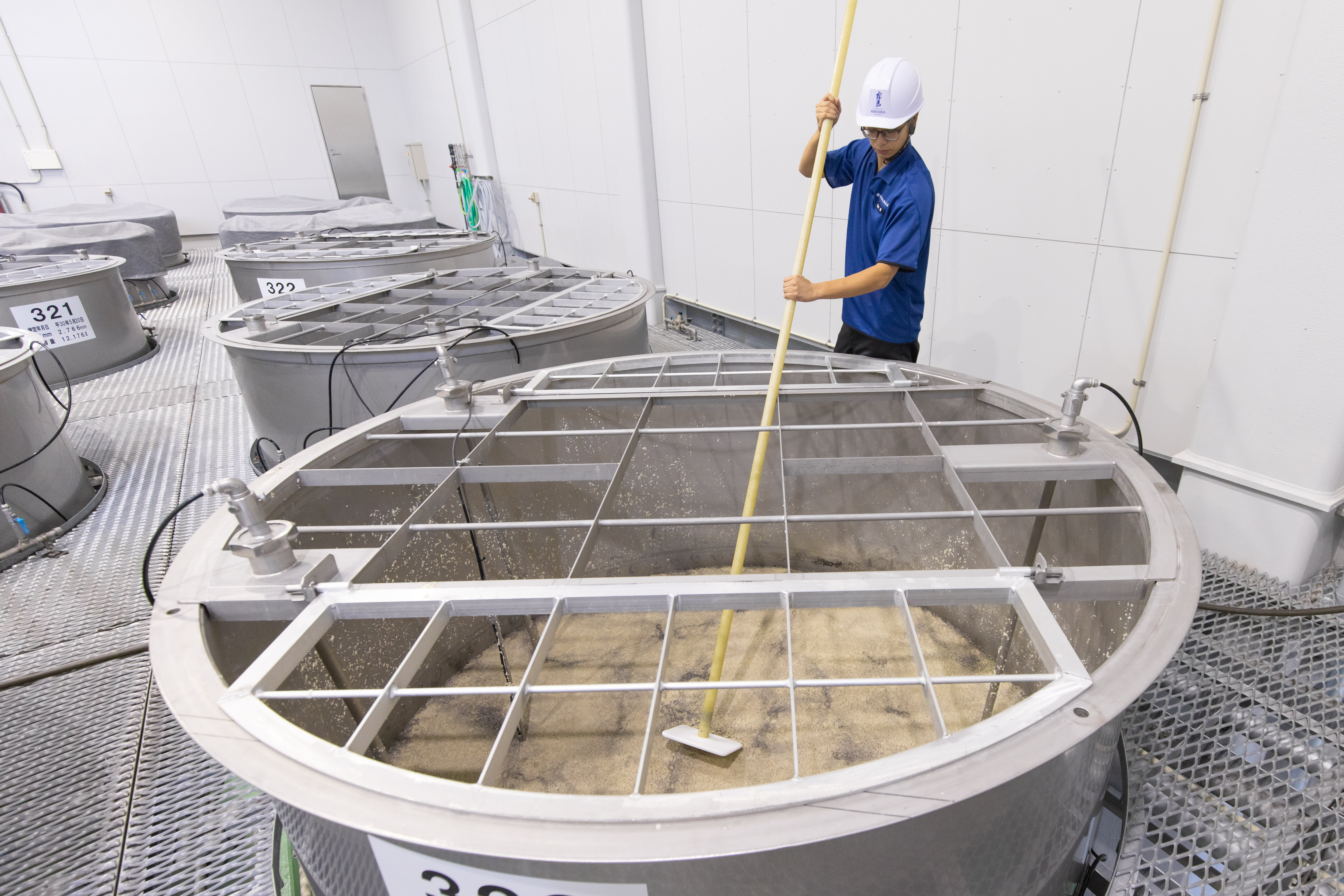 霧島酒造独自開発の「エレガンス酵母」(※5)は華やかな香りを強く醸し出す特性を持ちます。 理想的な発酵を実現するために、タンク内の温度を細やかに管理し、酵母が最も力を発揮できる環境を整えています。
